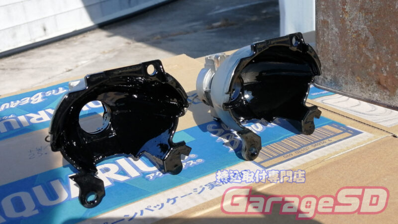 メッキ塗料を塗るために下地を黒で塗っていきます(‘ω’)ノ